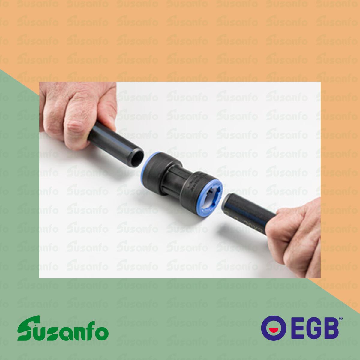 Accesorios Push-Fit para PE de EGB Group: conexiones rápidas, estancas y reutilizables sin necesidad de herramientas ni pegamentos. Diseñadas para trabajar hasta 16 bar, con rango de temperatura de 0-40 °C, resistencia a rayos UV y envejecimiento. Compatibles con PE, PP-R y PVC. Disponible en múltiples medidas y formatos (manguitos, codos, adaptadores, tes, etc.).