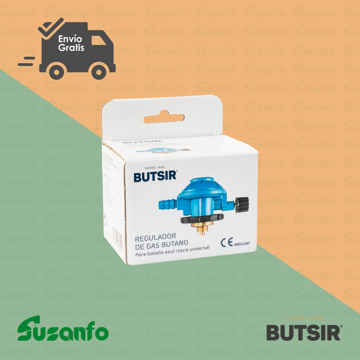 Regulador giratorio de gas BUTSIR R-340/C (REPU0002) para bombonas azules con rosca universal. Garantiza una conexión segura y un flujo estable hacia estufas, hornillos y cocinas de gas. Fácil de instalar, resistente y fiable. Envío gratis incluido.
