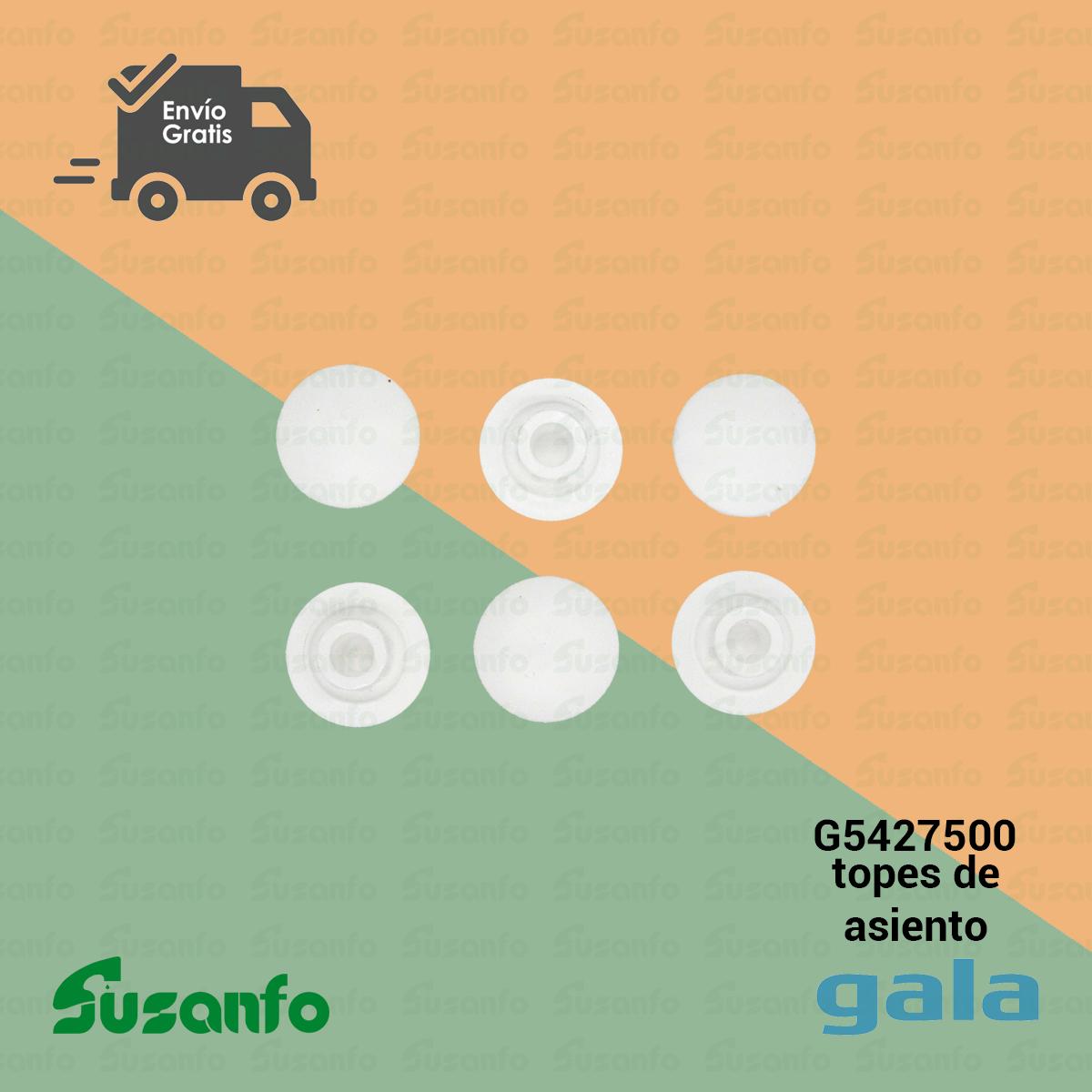 Juego de topes de asiento originales Gala compatible con inodoros Marina Post-10, Emma y Stylo. Incluye bolsa de 6 unidades para sustituir apoyos desgastados o rotos. Repuesto exacto con ajuste perfecto. Envío gratis.